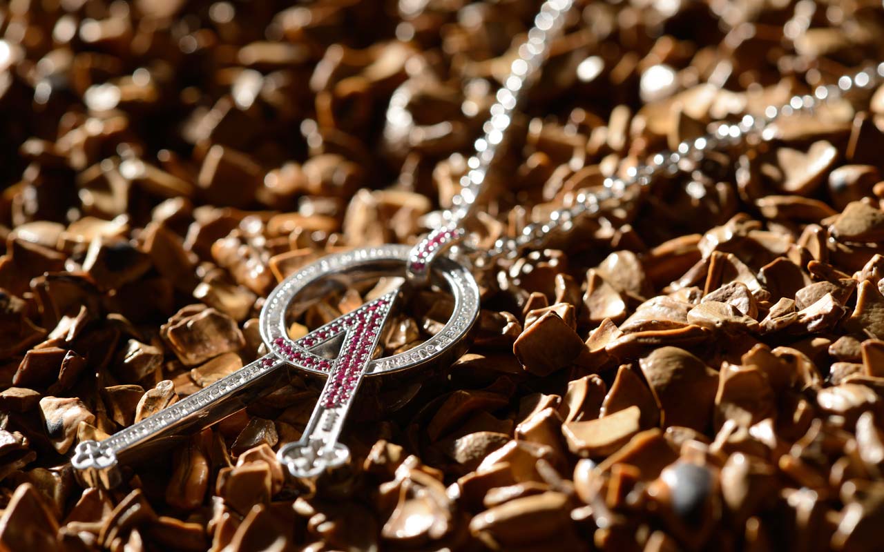 De la misma forma, al final del collar, brilla FLORA, el símbolo de la vida enmarcado en LA FEDE de TUUM, que contiene los valores que, por supuesto, envuelven y protegen la vida de cada hombre: honestidad, respeto de la palabra dada, puntualidad, prudencia y respeto a los progenitores. Estos detalles hacen única, inolvidable y absolutamente distintiva a esta joya tan tradicional.