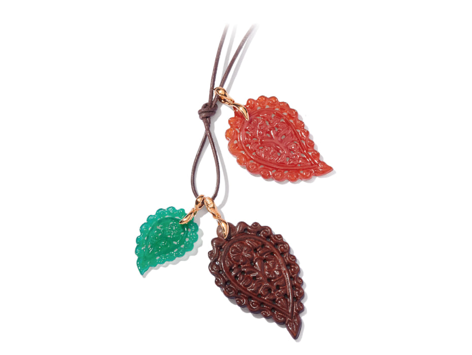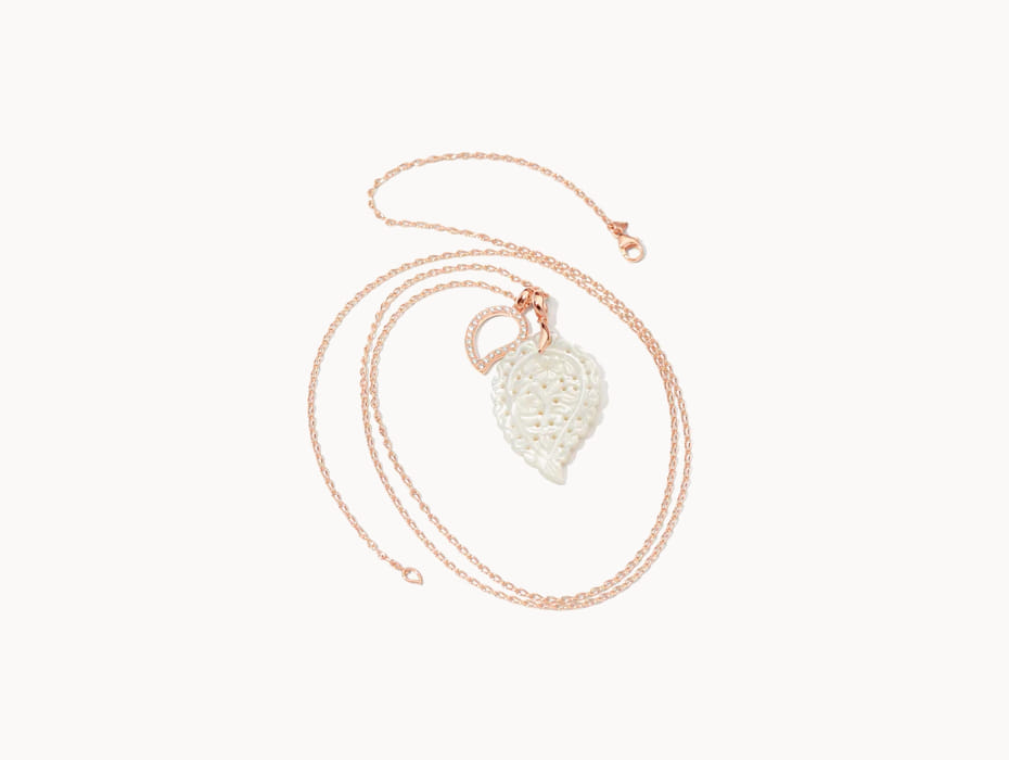 En el corazón de la colección INDIA se encuentran los colgantes en forma de hoja, auténticas obras de arte que reflejan la belleza de la naturaleza. Cada colgante está cuidadosamente esculpido con detalles suaves y ondulantes, evocando la ligereza de las hojas en el viento. Estas creaciones se embellecen con piedras preciosas seleccionadas con meticulosidad, que añaden un toque de elegancia atemporal.