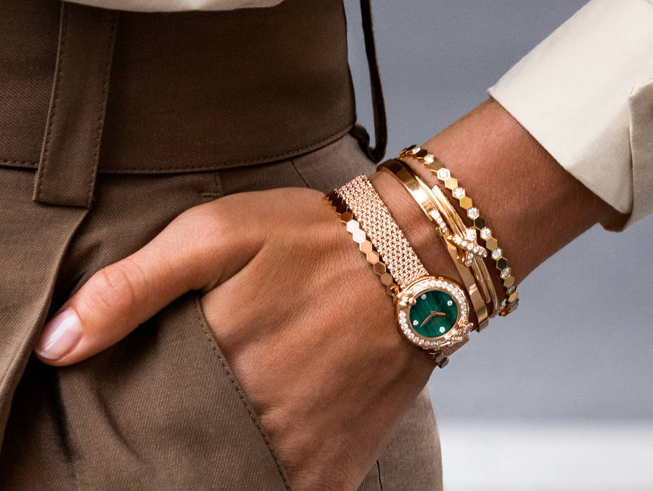 Las especialidades decorativas tales como el engastado, el esmaltado, el grabado o el guilloché demuestran el interés por el detalle, casi obsesivo, de la casa Chaumet. A decir verdad, la minuciosidad del arte joyero suizo y el rigor tecnológico, son las claves de la emblemática Casa de Alta relojería. Chaumet crea las carcasas, los brazaletes y los cuadrantes que conjugan todos los oficios para proporcionar una lectura del tiempo de una precisión infalible. Usando las gemas y los diamantes más raros, la marca crea complicaciones creativas que revelan proezas estéticas y técnicas incomparables.